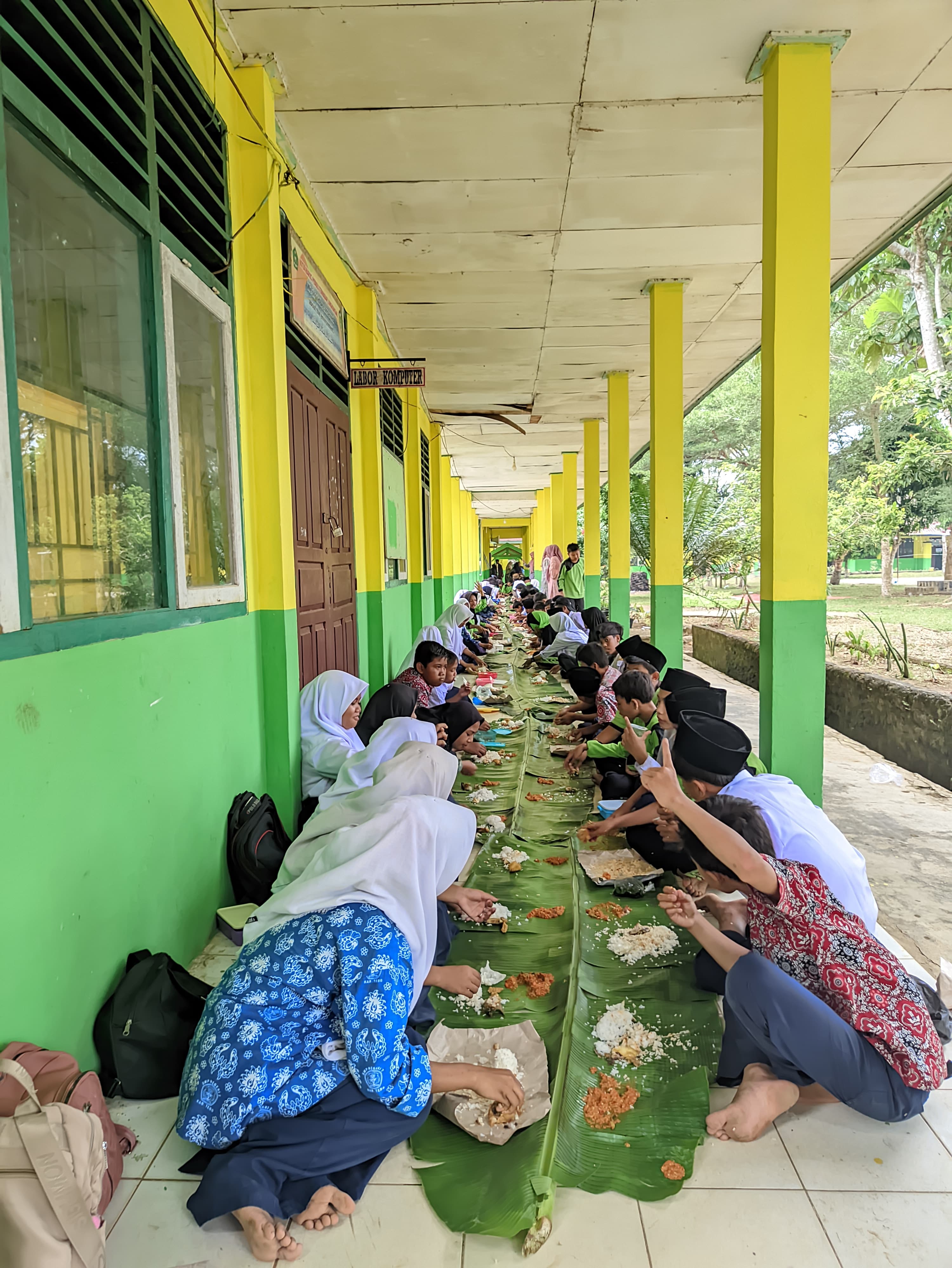 Masuk acara utama yaitu makan bersama dilaksanakan di depan kantor guru dan laboraturium madrasah. Siswa dan siswi duduk bersama-sama perkelas dan terlihat sangat antusias ketika waktu makan berlangsung. Mereka saling bercengkarama, dan tentunya mejalin keakraban satu dengan yang lainnya.