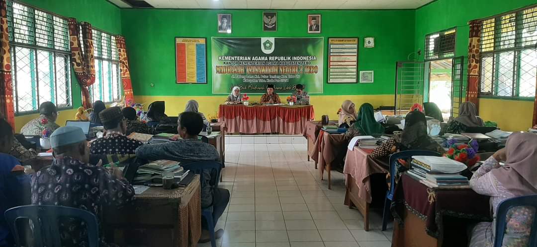 Pulau Temiang (Humas), MTsN 2 Tebo menggelar rapat koordinasi dan evaluasi pada hari Kamis tanggal 07 November 2024 di Ruang Guru. Kegiatan rapat kali ini diikuti oleh seluruh guru dan tenaga kependidikan MTsN 2 Tebo. Adapun agenda yang dibahas yaitu (1) Pembentukan Panitia Asesmen Sumatif Semester Ganjil Tahun Ajaran 2024/2025, (2) Persiapan Hari Amal Bakti (HAB), (3) Persiapan Perpisahan, (4) Evaluasi Supervisi Kepala Madrasah dan (5) Penilaian Kinerja Kepala Madrasah (PKKM).