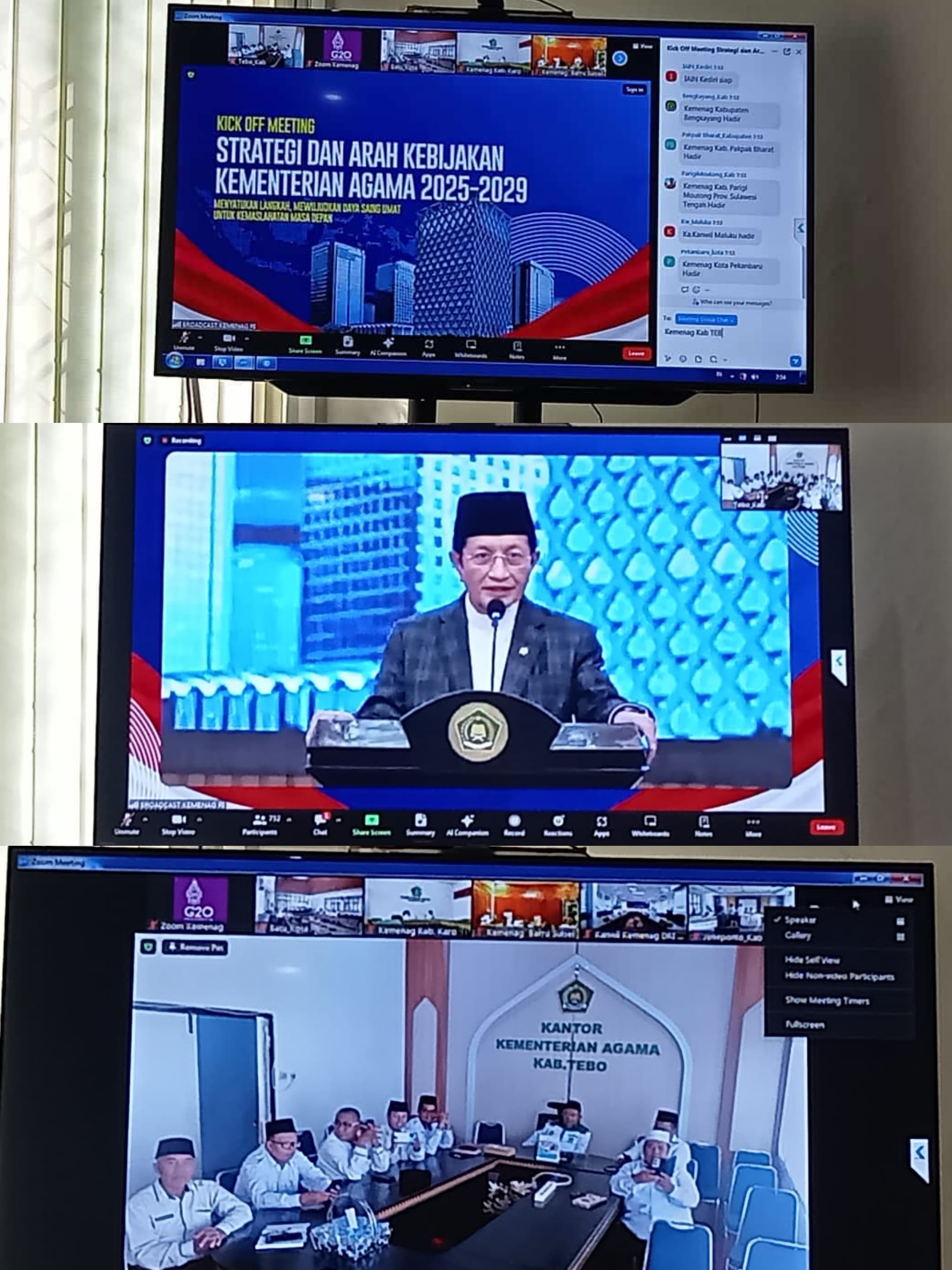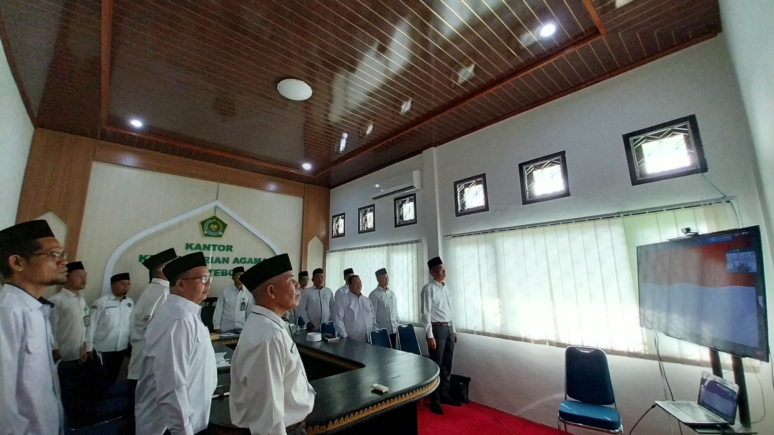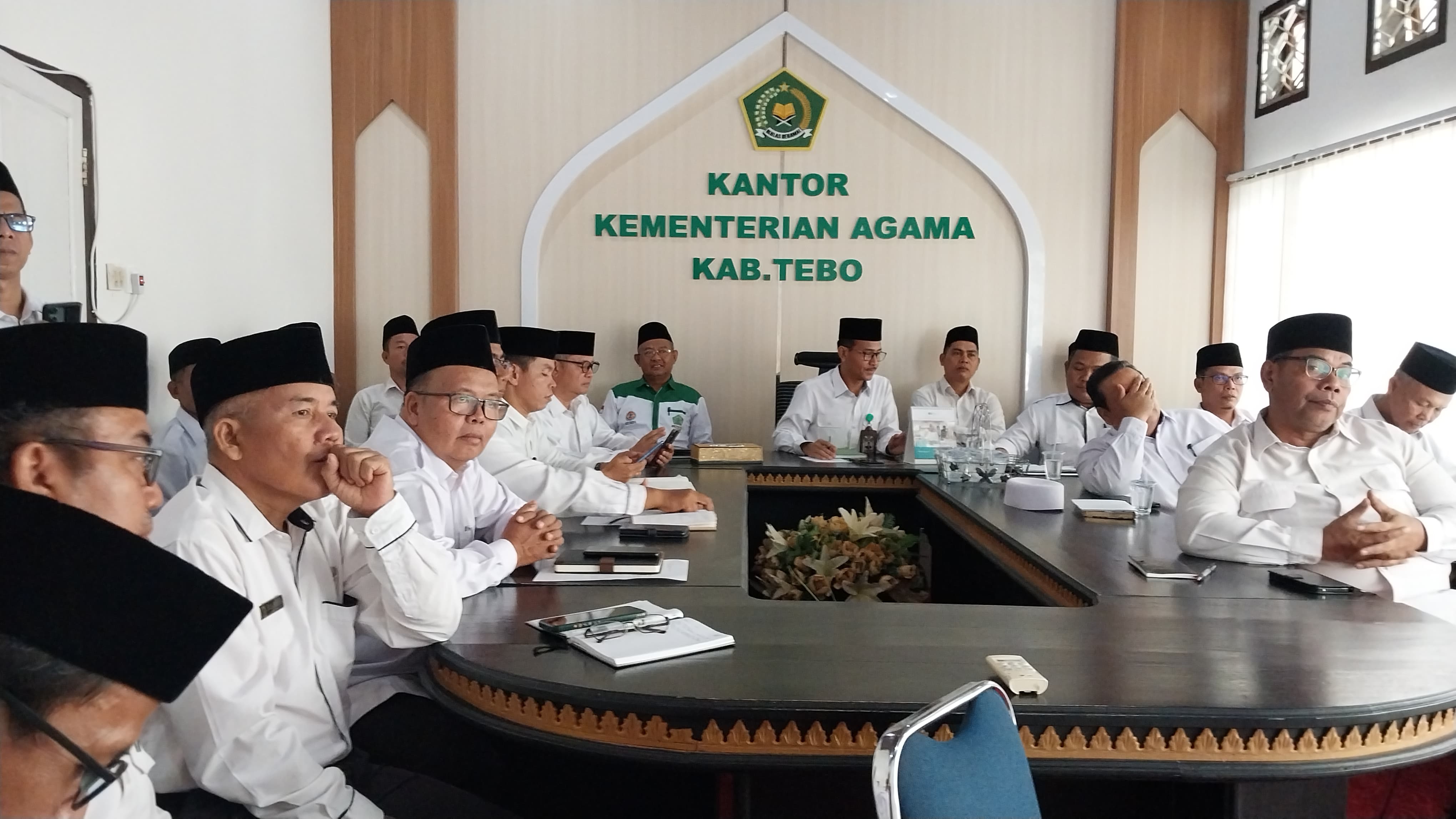 TEBO – Kementerian Agama Kabupaten Tebo, turut hadir dalam Kick Off Meeting atau Rapat Kerja Nasional (Rakernas) Kementerian Agama Republik Indonesia yang dilaksanakan pada Selasa, 12 November 2024 secara daring di Aula Pertemuan Kepala Kemenag Tebo. Rakernas ini menandai dimulainya periode kerja Kementerian Agama untuk tahun 2025-2029, dengan mengusung tema "Strategi dan Arah Kebijakan Kementerian Agama 2025-2029." Kegiatan ini dihadiri oleh seluruh kepala Kemenag daerah di Indonesia secara langsung dan daring.