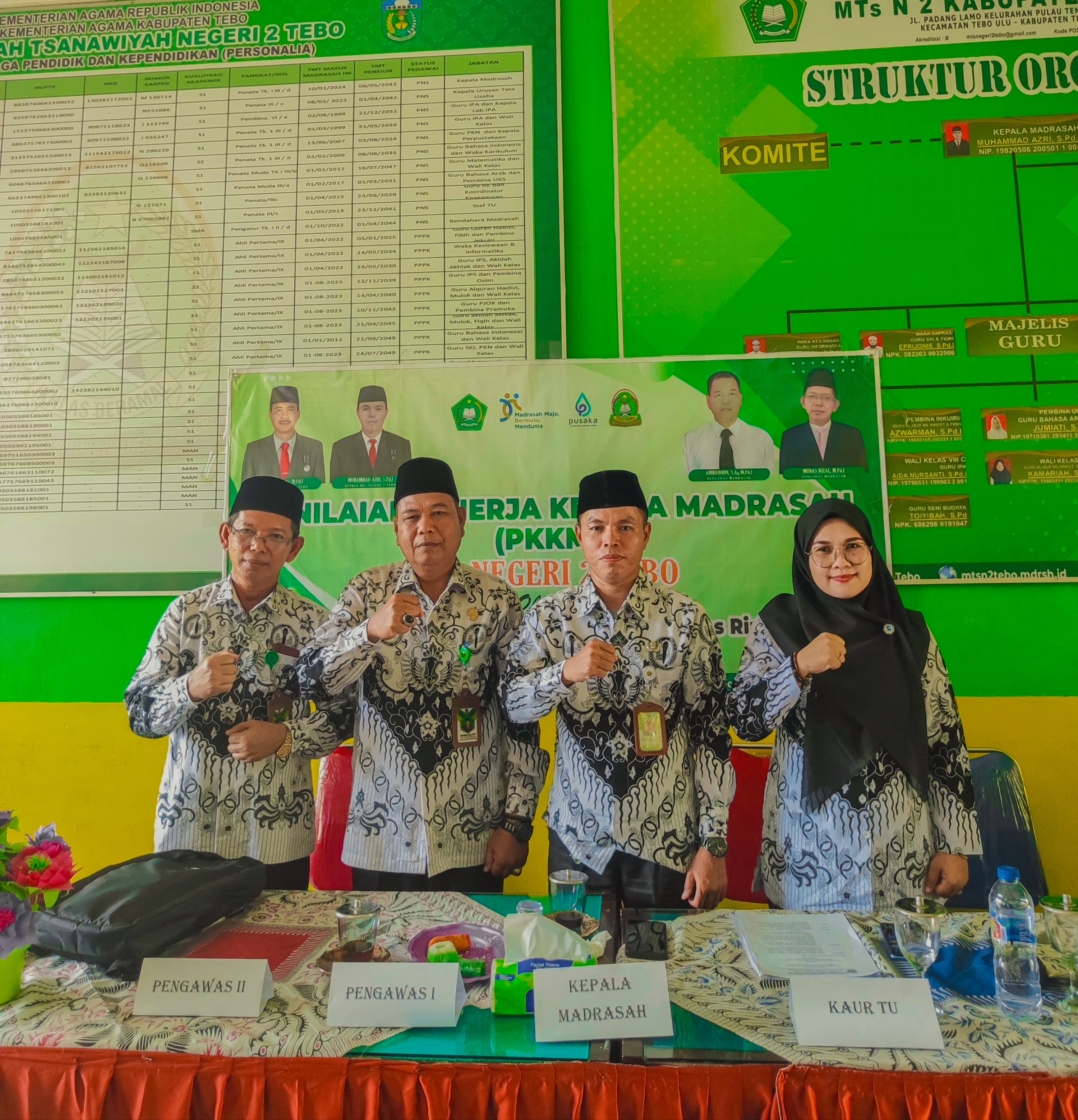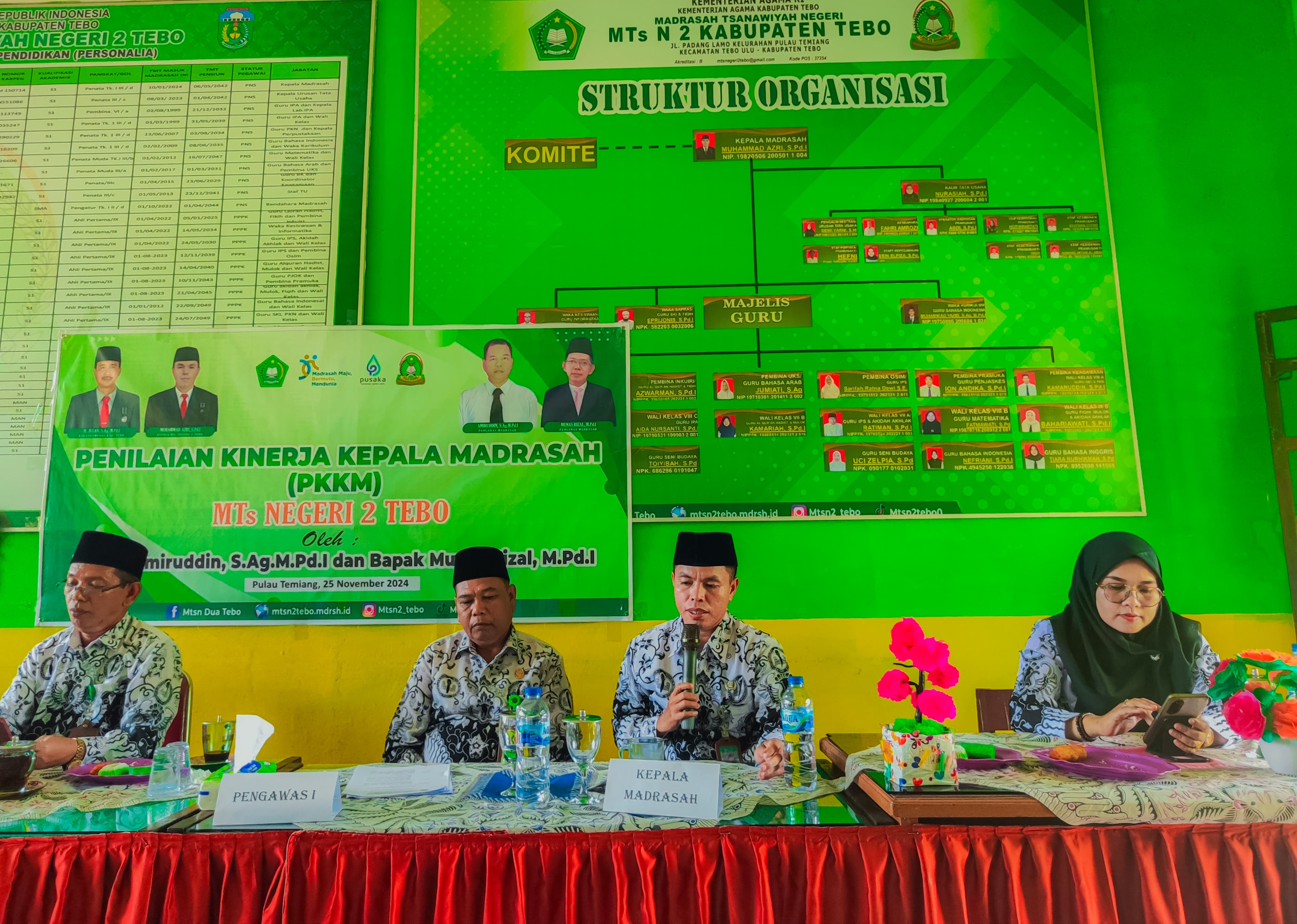 Pulau Temiang, 25 November 2024 – MTsN 2 Tebo melaksanakan Penilaian Kinerja Kepala Madrasah (PKKM) untuk tahun 2024 sebagai bagian dari upaya evaluasi dan peningkatan kualitas kepemimpinan di lingkungan madrasah. Kegiatan yang berlangsung pada hari Senin tanggal 25 November 2024 ini bertujuan untuk menilai dan mengevaluasi kinerja Kepala Madrasah dalam mengelola madrasah, meningkatkan kualitas pembelajaran, serta memperkuat pengelolaan administrasi madrasah.