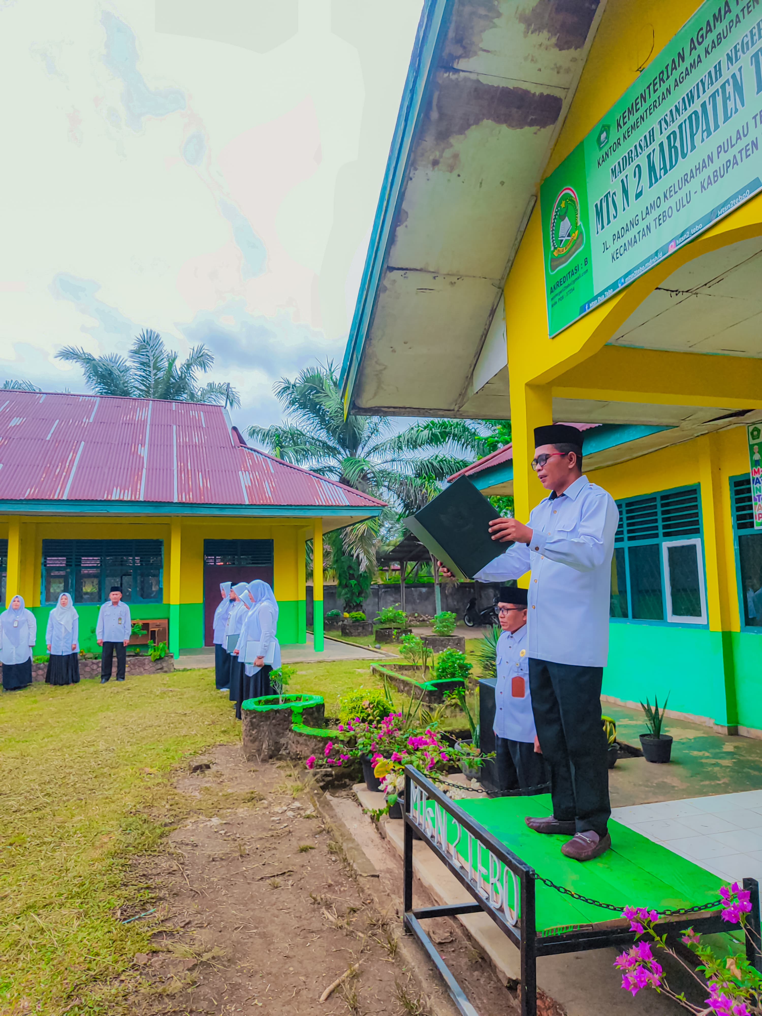Pulau Temiang (Humas) - MTsN 2 Tebo menggelar upacara peringatan Hari Amal Bhakti (HAB) ke-79 Kementerian Agama Republik Indonesia dengan penuh khidmat dan semangat. Bertempat di halaman madrasah, upacara ini dilaksanakan pada tanggal 3 Januari 2025 diikuti oleh seluruh siswa, guru, dan staf madrasah. Tema peringatan tahun ini, "Umat Rukun Menuju Indonesia Emas" diangkat sebagai simbol semangat kebersamaan dan persatuan umat dalam mewujudkan Indonesia yang maju, sejahtera, dan berkeadilan.