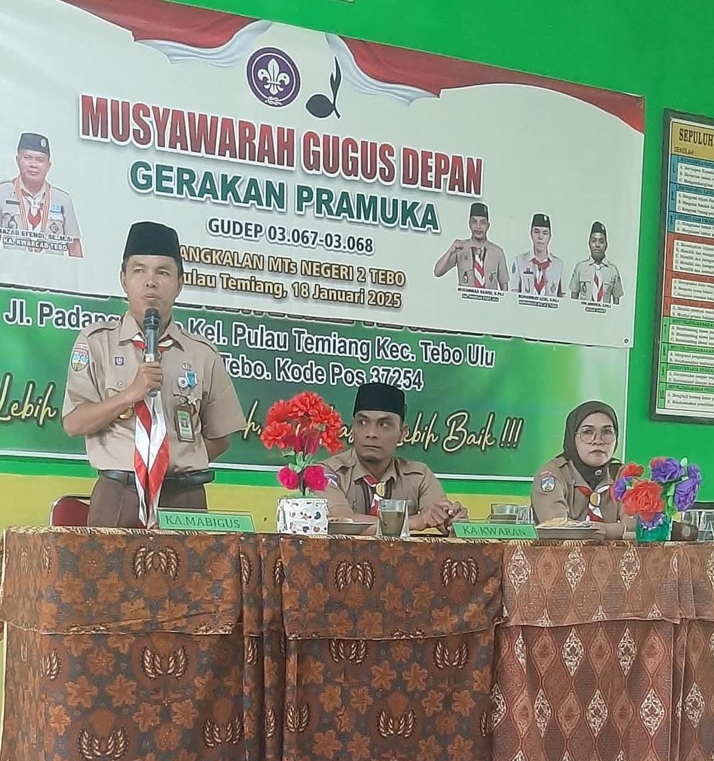 Pulau Temiang, 18 Januari 2025 – Musyawarah Gugus Depan (MUGUS) di MTsN 2 Tebo berhasil digelar dengan sukses, membawa angin segar dalam upaya peningkatan kualitas pramuka di madrasah. Kegiatan yang berlangsung pada hari Sabtu, 18 Januari 2025, ini dihadiri oleh Kak Muhammad Rasidi, S.Pd.I selaku Ka. Kwaran Tebo Ulu, Kak Muhammad Azri, S.Pd.I selaku Kamabigus, Ibu Nurasiah selaku Wakil Mabigus, seluruh perwakilan anggota pramuka, serta Bapak Ion Andika, S.Pd.I selaku pembina pramuka di MTsN 2 Tebo.