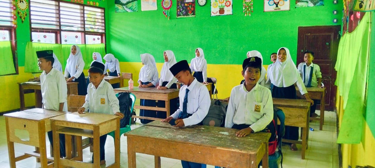 Acara dimulai dengan khidmat saat lagu kebangsaan Indonesia Raya berkumandang di seluruh area madrasah. Seluruh peserta, mulai dari siswa hingga guru, berdiri tegak dan menyanyikan lagu dengan penuh semangat.