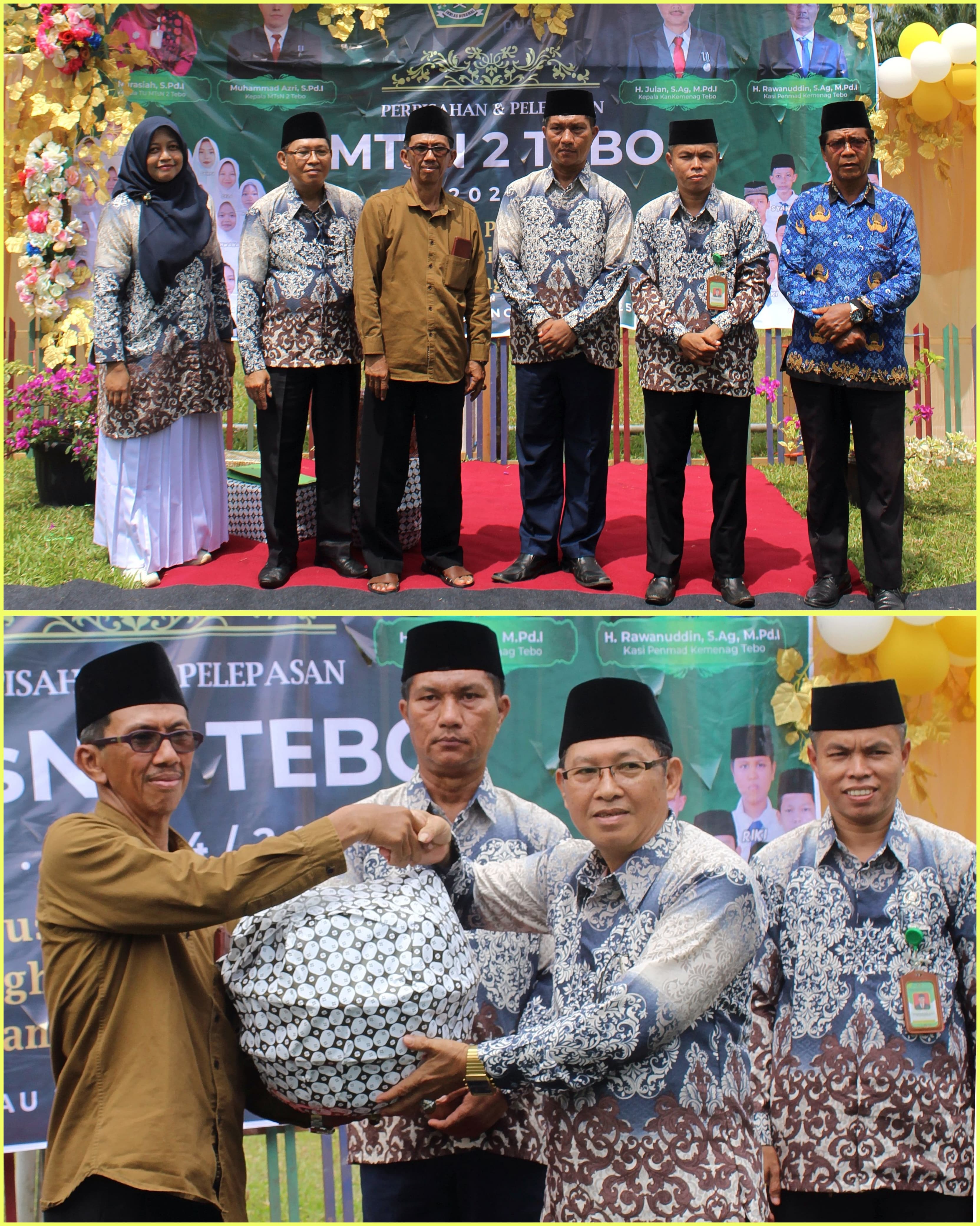 Tak Lupa pula suasana haru menyelimuti MTsN 2 Tebo saat seluruh civitas madrasah memberikan penghormatan terakhir dalam acara perpisahan untuk Bapak Azwarman, guru senior yang resmi memasuki masa purna tugas. Bapak Azwarman, yang telah mengabdi lama sebagai pendidik, dikenal sebagai sosok yang disiplin, sabar, dan penuh dedikasi. Dalam sambutannya, Kepala MTsN 2 Tebo menyampaikan rasa hormat dan terima kasih yang mendalam atas pengabdian beliau.