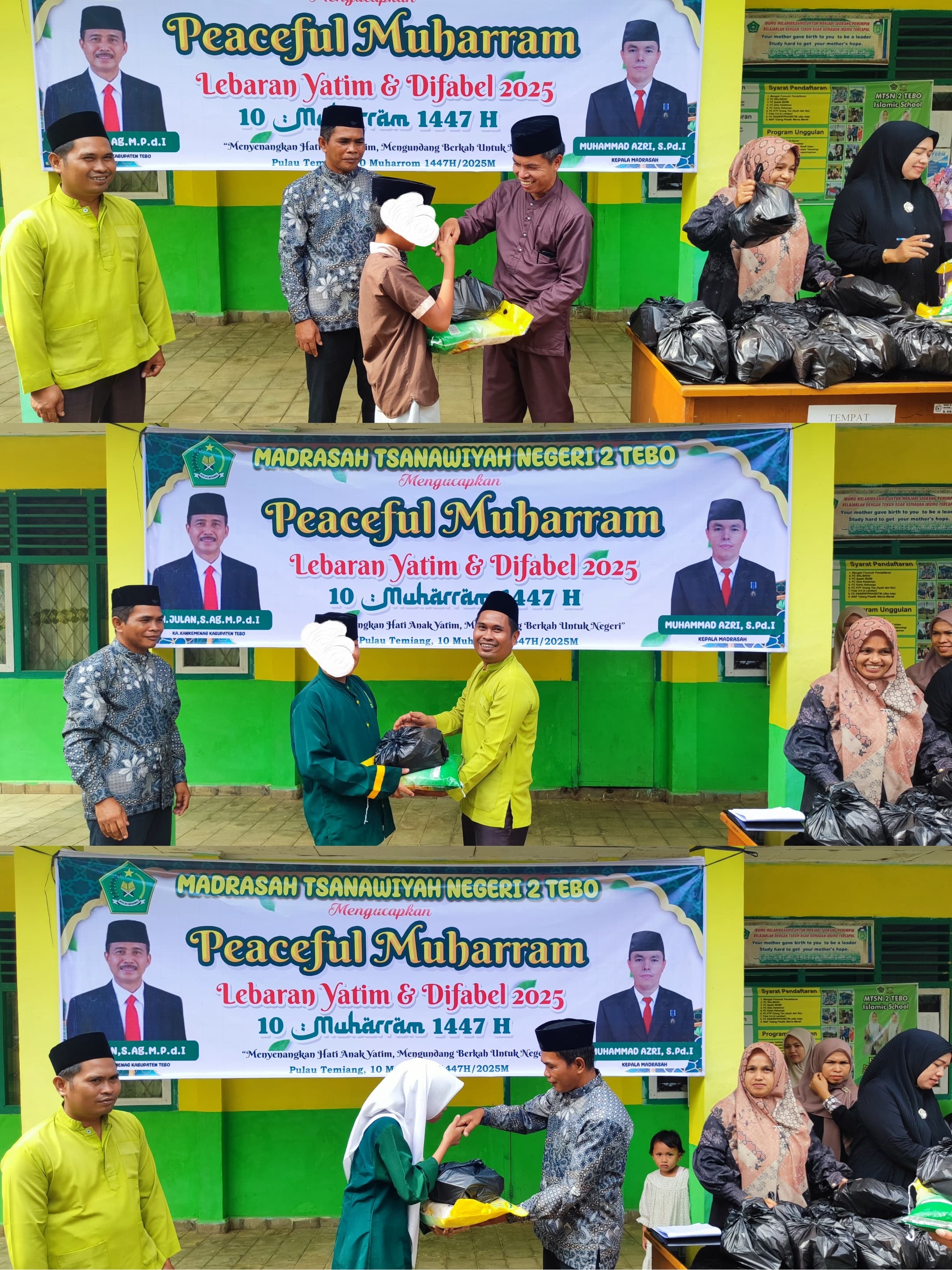 Pulau Temiang (humas)— Bulan Muharram yang dikenal sebagai salah satu bulan suci dalam kalender Islam, menjadi momentum spesial bagi MTsN 2 Tebo untuk menebar kasih sayang dan kepedulian. Dalam semangat *Peaceful Muharram*, madrasah menggelar acara bertajuk “Lebaran Yatim dan Difabel 2025â€, yang diikuti oleh anak yatim dan siswa difabel dalam lingkungan madrasah.