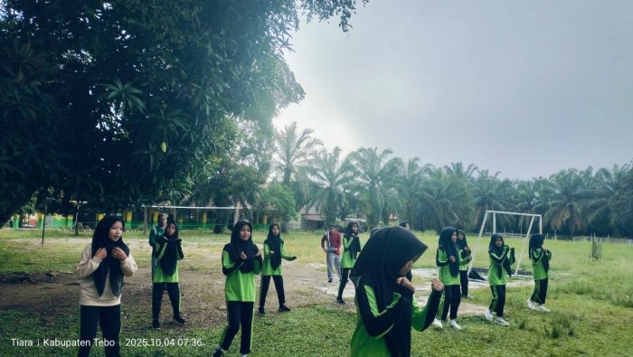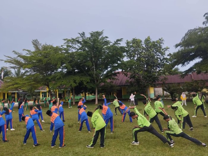 Pulau Temiang - MTsN 2 Tebo kembali mengadakan kegiatan rutin Senam Sabtu Sehat sebagai bagian dari upaya menanamkan budaya hidup sehat di lingkungan madrasah. Kegiatan ini dilaksanakan setiap akhir pekan di halaman madrasah dan menjadi agenda tetap bagi seluruh warga madrasah .