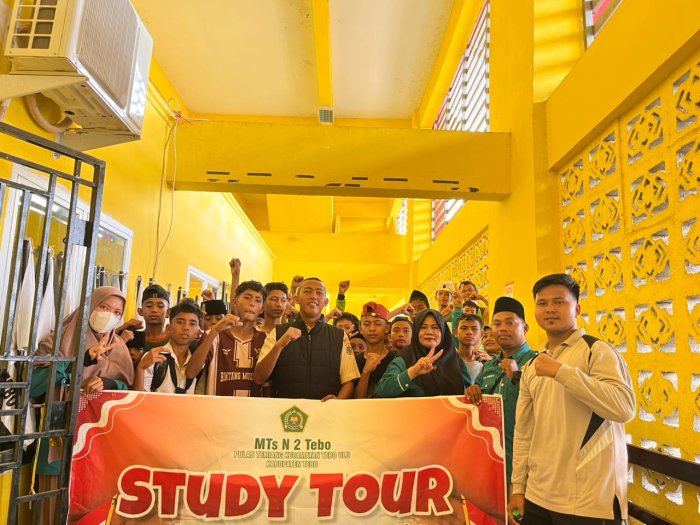 Tebo, 10 November 2025 � Dalam rangka memperingati Hari Pahlawan Nasional, Madrasah Tsanawiyah Negeri (MTsN) 2 Tebo melaksanakan kegiatan Study Tour Edukatif ke beberapa lokasi penting di Kabupaten Tebo. Kegiatan ini diikuti oleh para guru dan siswa dengan penuh semangat serta dipimpin langsung oleh Kepala Madrasah, Muhammad Azri, S.Pd., M.Pd.