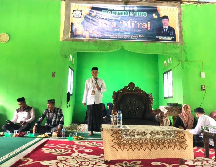 Acara peringatan Isra' Mi'raj tersebut dilaksanakan di lingkungan MTs Negeri 2 Tebo dan diawali dengan pembacaan ayat suci Al-Qur'an, dilanjutkan dengan sambutan Kepala Madrasah. Dalam sambutannya, Kepala MTs Negeri 2 Tebo menyampaikan bahwa peringatan Isra' Mi'raj merupakan momentum penting untuk meningkatkan keimanan dan ketakwaan kepada Allah SWT, serta meneladani akhlak Nabi Muhammad SAW.