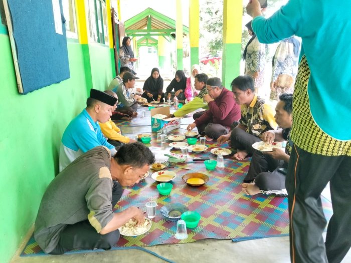 Tebo - Guru dan staf MTs Negeri 2 Tebo melaksanakan kegiatan makan bersama setelah selesai mengikuti kegiatan gotong royong di lingkungan madrasah. Kegiatan ini berlangsung dalam suasana penuh keakraban dan kekeluargaan sebagai bentuk kebersamaan antar warga madrasah.