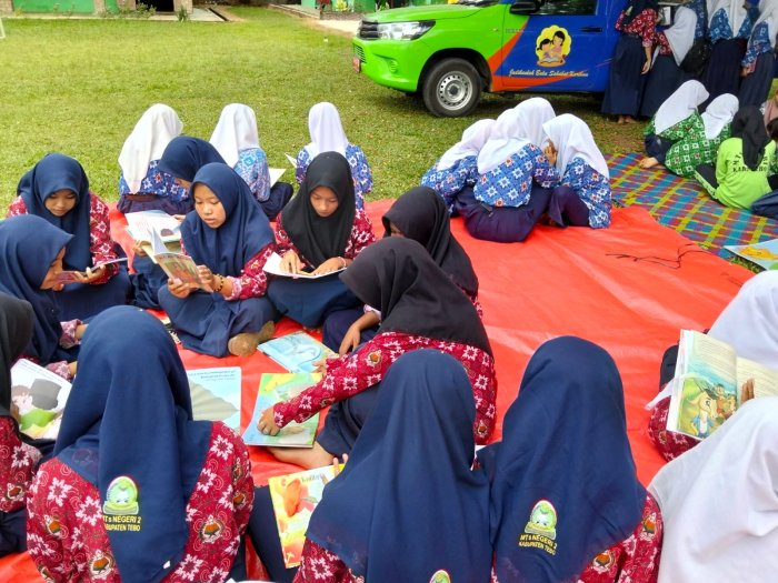 Kedatangan Perpustakaan Keliling memberikan suasana baru bagi siswa. Beragam koleksi buku bacaan, mulai dari buku pelajaran, cerita anak, hingga pengetahuan umum, tersedia dan dapat dibaca langsung oleh siswa. Para siswa tampak bersemangat memilih dan membaca buku yang menarik perhatian mereka.