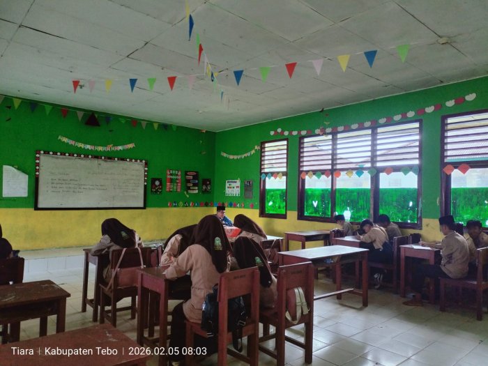 Tebo - Kegiatan belajar mengajar (KBM) di MTs Negeri 2 Tebo terus berlangsung dengan tertib dan kondusif. Pada hari ini Kamis 05 Januari 2026, peserta didik kelas VIIA, VIIB, dan VIIC melaksanakan pembelajaran di kelas masing-masing dengan materi yang berbeda sesuai jadwal mata pelajaran.