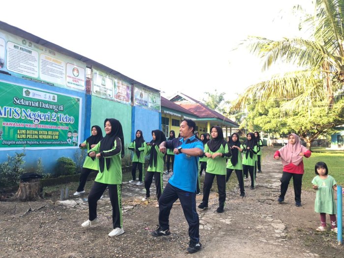 Tebo – MTsNegeri 2 Tebo secara rutin melaksanakan kegiatan senam pagi setiap hari Sabtu sebelum kegiatan belajar mengajar dimulai. Kegiatan ini diikuti oleh seluruh siswa, guru, dan tenaga kependidikan sebagai upaya menjaga kebugaran jasmani serta menanamkan pola hidup sehat di lingkungan madrasah.