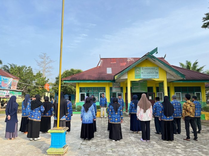Tebo – Dalam upaya meningkatkan kedisiplinan dan semangat kerja, tenaga pendidik MTsNegeri 2 Tebo melaksanakan apel kedisiplinan pagi di halaman madrasah pada kamis, 12 februari 2026. Kegiatan ini diikuti oleh seluruh guru dan tenaga kependidikan sebelum memulai aktivitas pembelajaran.
