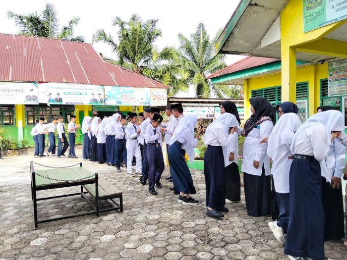 Apel dimulai pukul 07.00 WIB, Seluruh peserta apel berbaris rapi sesuai kelas masing-masing, sementara para guru dan tenaga kependidikan turut hadir mendampingi serta memberikan teladan kedisiplinan.
