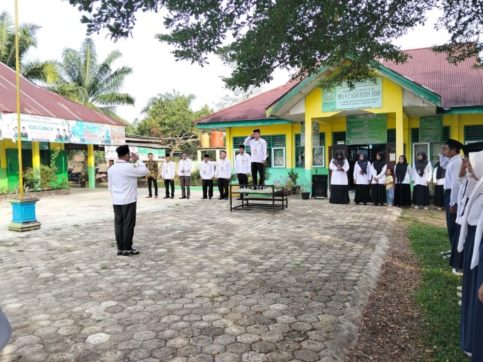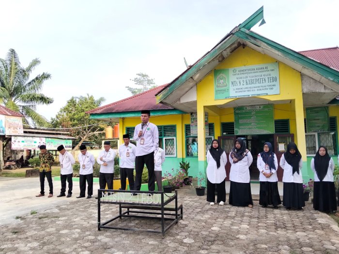Tebo – Seluruh siswa serta Pendidik dan Tenaga Kependidikan (PTK) MTsNegeri 2 Tebo mengikuti kegiatan Apel Kedisiplinan Pagi yang dilaksanakan di halaman madrasah pada Senin (2/3/2026). Kegiatan ini berlangsung dengan tertib dan penuh khidmat sebagai bagian dari upaya menanamkan budaya disiplin di lingkungan madrasah.