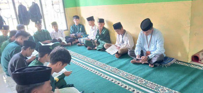 Tebo - Dalam rangka memperingati Nuzulul Qur'an, MTs Negeri 2 Tebo menggelar kegiatan khataman Al-Qur'an bersama yang diikuti oleh seluruh siswa, guru, dan tenaga kependidikan di lingkungan madrasah. Kegiatan tersebut berlangsung dengan khidmat dan penuh semangat religius sebagai bentuk kecintaan terhadap Al-Qur'an.