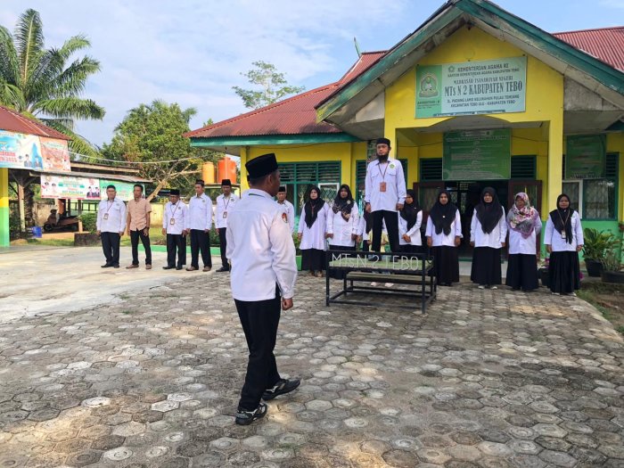 Tebo — Kegiatan apel pagi di MTsNegeri 2 Tebo yang dilaksanakan pada Senin (09/03/2026) berlangsung dengan tertib dan lancar. Apel pagi tersebut diikuti oleh seluruh siswa, guru, serta staf tata usaha yang hadir di lapangan madrasah sejak pagi hari.