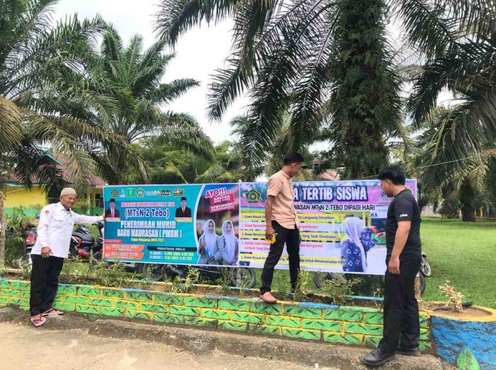 Spanduk penerimaan murid baru itu dipasang di depan lingkungan madrasah serta beberapa lokasi yang mudah diakses oleh masyarakat. Informasi yang tercantum meliputi jadwal pendaftaran, persyaratan, serta keunggulan program pendidikan yang ditawarkan oleh MTsN 2 Tebo.
