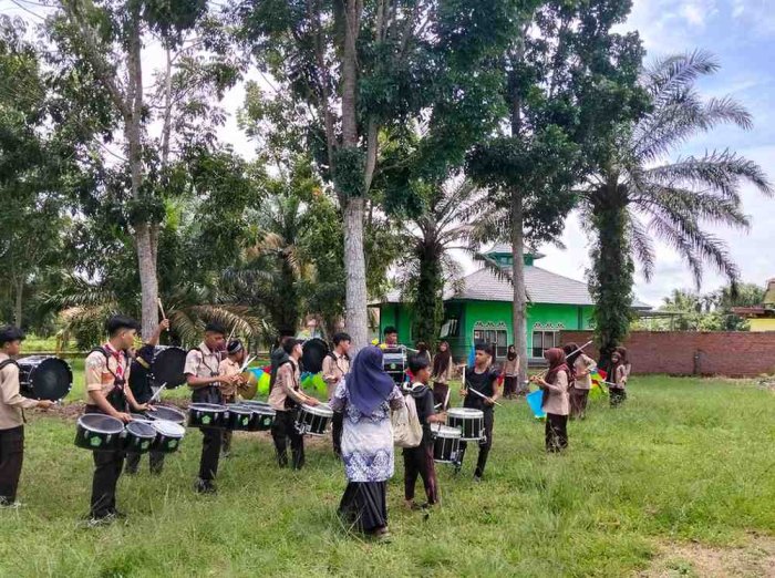 Tebo – Anggota drumband MTsNegeri 2 Tebo tengah melaksanakan latihan intensif dalam rangka mempersiapkan penampilan pada acara Gebyar Seni yang akan digelar di lingkungan madrasah. Kegiatan ini menjadi bagian dari upaya sekolah untuk menampilkan bakat dan kreativitas siswa di hadapan tamu undangan.